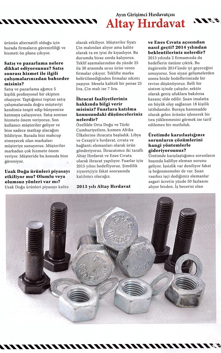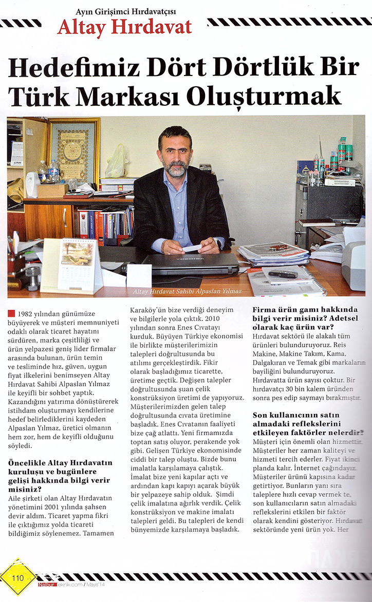 Nalbur Teknik dergisindeki röportajımız.